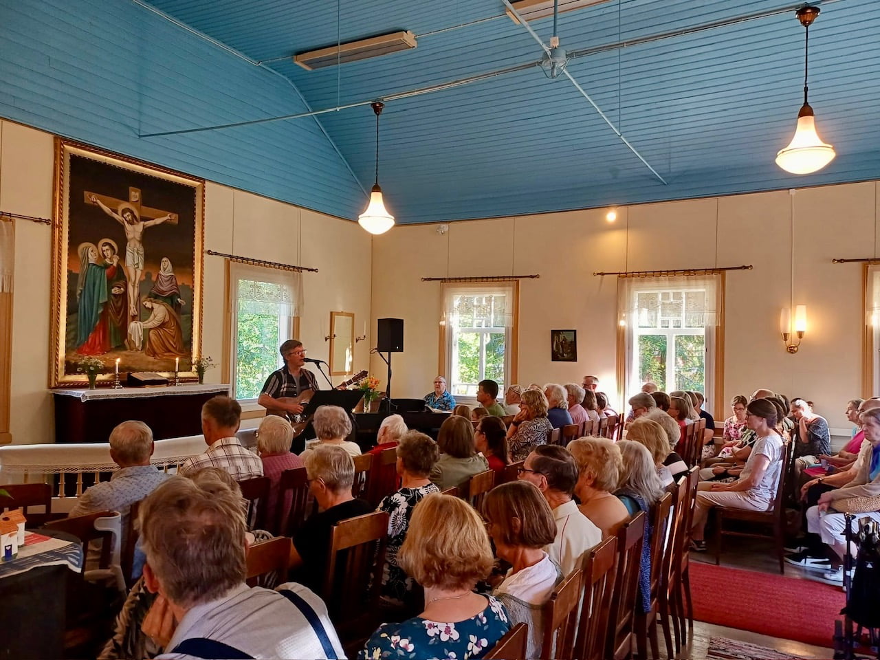 Potkästä aikaa yhteisessä runojen ja laulujen illassa Anna-Mari Kaskisen kanssa Lohtajan Kirkkomusiikkijuhlilla. Navetan vintti täynnä innokasta yleisöä! Järjestäjien kanssa yhteiskuva lopuksi (24.7.24)